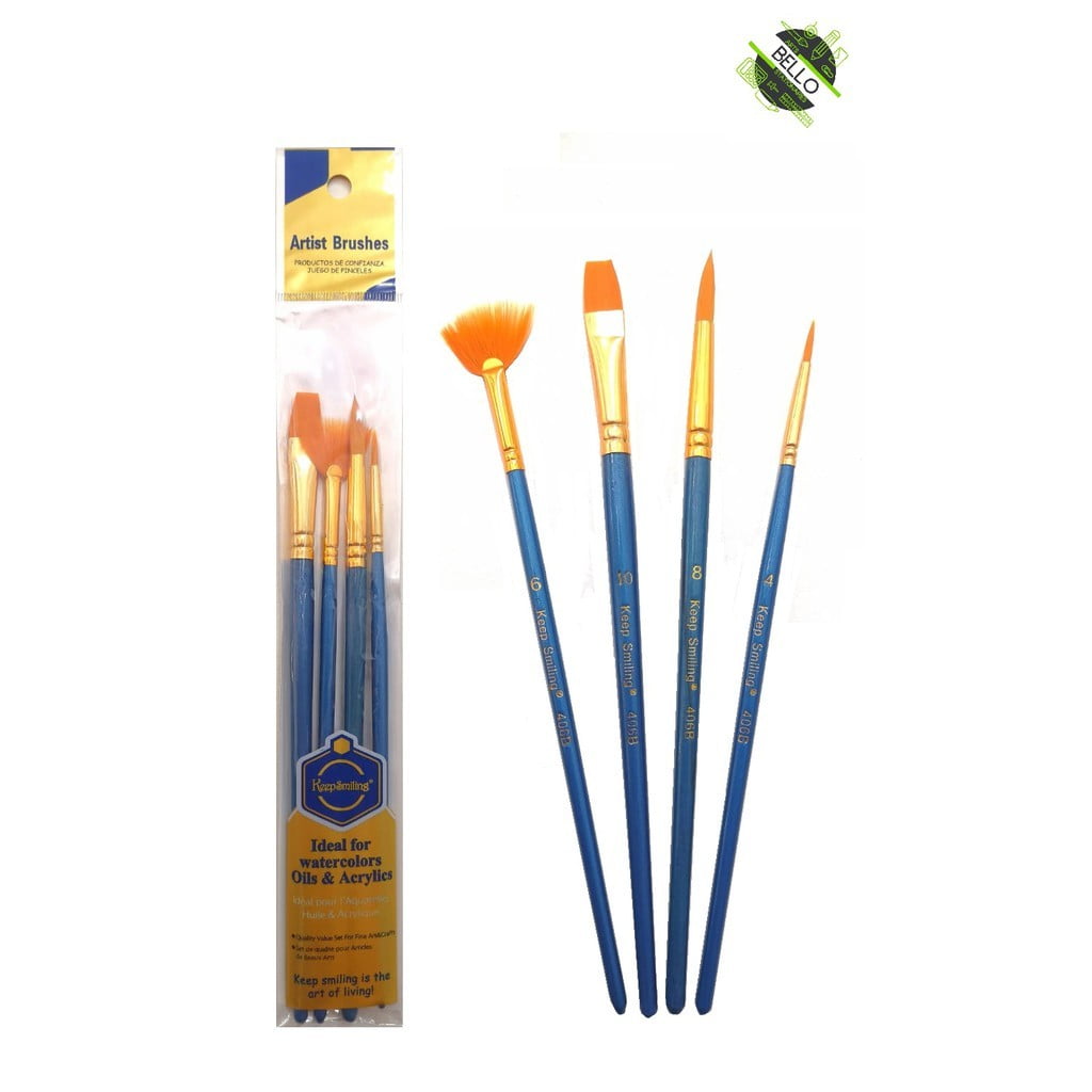 These Paint Brushes are Ideal for Watercolor, Oil, Acrylic Paints. Also Body, Nail, Face Painting, Miniature, model, ceramic, Craft Art Painting etc.To clean, run brushes under warm water, washing out the paint and gently use your fingers to reshapeHas a very comfortable brush body design, A traditional and popular head shape for all-purpose paints, Best artist brush for painting. Set of 4 brushes of different type and sizes. A complete set ideal for artists or children.