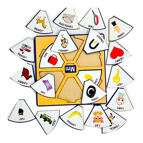 Learn about six different new words from single alphabet. Find the right words as per Alphabet and put in the wheel. Total 26 letters *6 words in each combination =156 words. Watch out the video to check complete product . Size of board -5.3*5.3 inch SPECIAL FEATURES: Kids develop problem solving skills and learn about Alphabets and words in unique way Promotes hand-eye coordination, fine motor skills, critical thinking and problem-solving skills, visual senses, and kinetics awareness. A unique product to help kids learn multiple words using Alphabets. Made in India: This product has been carefully made in India.