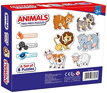 This set of 3 puzzles brings to you a simple creative way to teach your child about 3 different animals found on the farm. Intended for beginners, these simple and colorful puzzles use the “play and learn” technique to provide children with an activity that is both fun as well as geared to develop their motor skills and hand-eye coordination. The puzzles are cut out in the shape of the animals which are fixed in their frames.The bold outlines on the frame subtly guide children on how to tackle each puzzle, ensuring success. Each puzzle is approximately 12.5 x 12.5 cm (including the frame) in size and is compact and easily portable. These puzzles will keep your child engaged while improving their visual skills, logical thinking, concentration and level of patience.