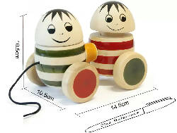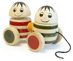 Bobblers ( Push / Pull toy ) is a wooden build and play toy containing three brightly coloured stacking parts. Hee-Haw refines the child's eye-hand coordination and also builds their motor co-ordination skills . This educational toy helps children feel and understand shapes and order . This toy is made using traditional lacware toy making techniques.