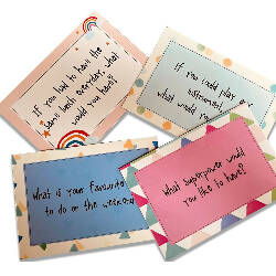 Conversation skills are important for children's development and wellbeing. That's because being able to have conversations helps children make friends, be listened to, ask for what they need and develop strong relationships with others. These cards will help kids/adults to have meaningful and fun conversations at any gettogether or party. The same can be played by parents with their child also which will enhence communications with the child.Most cards are about your interests, aims and experiences.