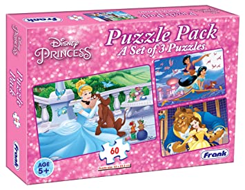 Welcome to Disney World. A creatively designed, fun learning activity as well as an educational tool for kids of 5 years of age and above. This puzzle pack comprises 3 puzzles in one pack. Each of the puzzles depicts 3 unique animated series having universally known and loved fictional characters. If you want to indulge your kids with an efficient “plays and learns technique” than this is the best option for you to go for as it will create a major impact on the concentration level of your child. Each of these attractive puzzles is made of 60 pieces and have a dimension of 35 x 23.5 cm. The child will be able to perform better in exams as well as gain confidence in participating in co-curricular activities held in school.In the first creatively designed Jigsaw puzzle, Disney presents to you a very well known Princess by the name “Cinderella”. Cinderella is a 2015 romantic fantasy film directed by Kenneth Branagh and co-produced by Walt Disney Pictures. This puzzle depicts “Cinderella” along with her pet dog “Bruno”, her mice friends “Jaq” and “Gus”, the other mice and birds too. The beautiful scenery surrounding them is what adds to this amazing puzzle. The second puzzle depicts the world famous “Aladdin”, “Princess Jasmine”, and “Abu” on the magical carpet. Aladdin is a 1992 American animated musical fantasy film produced by Walt Disney Feature Animation and released by Walt Disney Pictures. The lead character is “Aladdin” an urchin who falls in love with “Princess Jasmine”, but cannot marry her as he is not a prince. He finds a magic lamp of the “Genie” that turns him into a prince. “Abu” is Aladdin's oldest friend, a highly intelligent monkey with a strong streak of kleptomania and a natural gift for thievery. The magical carpet depicted here is an enchanted carpet that has been trapped in the Cave of Wonders for an untold time, this magical rug is capable of flight. The third puzzle depicts one of the most loved American musical romantic fantasy film “The Beauty and the Beast” directed by Bill Condon. The characters depicted on this puzzle are none other than “Belle” referred to as “Beauty” who is a young French peasant woman with a passion for reading and “Prince Adam” referred to as the “Beast”. He is transformed into a beast by a beautiful enchantress as punishment for his arrogance. He has the head structure and horns of American bison, the arms, and body of a bear, the ears of a deer, the eyebrows of a gorilla, the jaws, teeth, and mane of a lion, the tusks of a wild boar, and the legs and tail of a wolf.Grab this power pack of 3 jigsaw puzzles for your child as he/she will have exposure to the various fictional characters both humans as well as animals. Identify them and assemble the pieces correctly. It will determine how each character is different from the other in terms of their physical appearance. Vivid colors used will master them in learning different colors. So it's not just fun and entertainment but also a learning tool for your child.