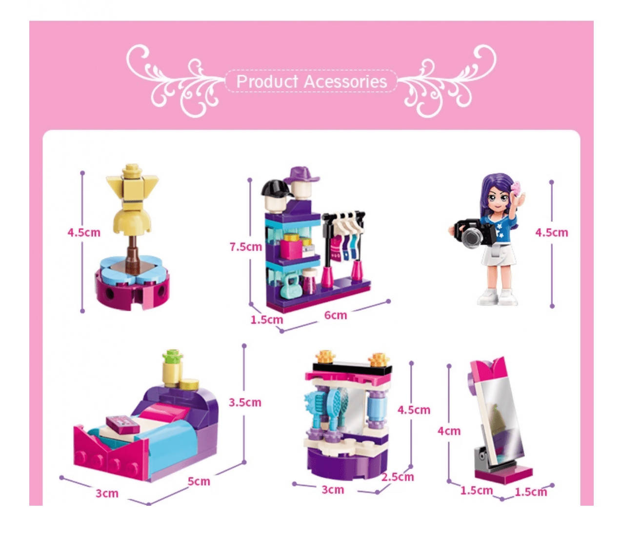 Build Doris’s Bedroom with 126 blocks. Varying collocations and leading the trend. Very creative appearance design, cartoon pretty girls Doris holding camera, dressing table, wardroom these are the elements that girls love very much. The girls are not only happy play, but also full of beautiful imagination. High-quality Bricks-Every brick is screened and tested by professional machines, which greatly reduces the error rate of bricks and greatly improves the play experience. The bricks are closely connected to the bricks without feeling loose, have high quality. Vivid and Detailed Colorful Manual Book--The manual book has detailed color step diagrams. It has passed the test of many professional players. It is very detailed and easy to follow. Even a beginner will not make you feel difficult. Exquisite Packaging-The bricks are classified into a number of parts packages in detail, which will not make you feel messy. The well-designed packaging box will make you shine, suitable as a gift for your friends.