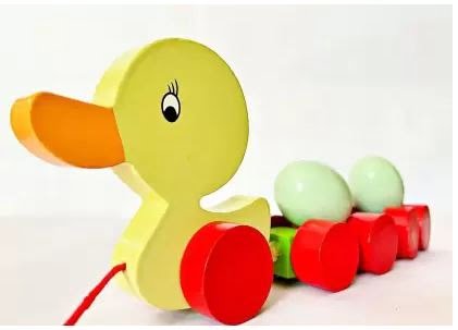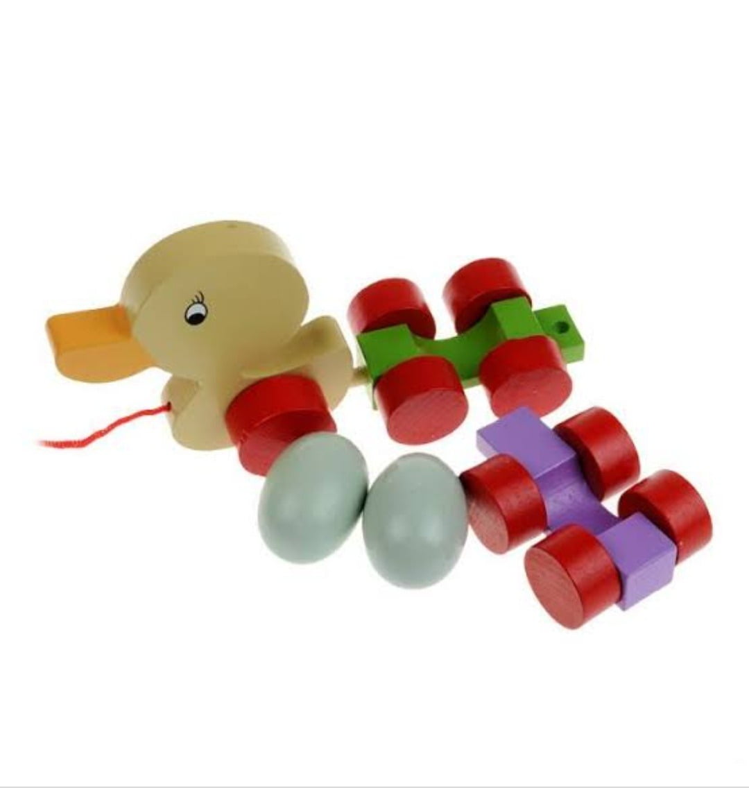 This classic duck and egg pull along toy will spark imaginations and encourage story telling as little ones create their own adventures. Help mummy duck get her eggs safely home by carefully pulling her along.As the wheels move the eggs rotate, creating a challenge for toddlers while strengthening hand-eye coordination and fine motor skills. Pull along toys have been around for years and are a great way to encourage active play and get little ones moving freely.Wooden pull toys can promote many different aspects of a child’s development, from problem solving to coordination and grasping. This traditional pull along toy makes the ideal gift for toddlers.Made from durable and natural wood with smooth edges.
