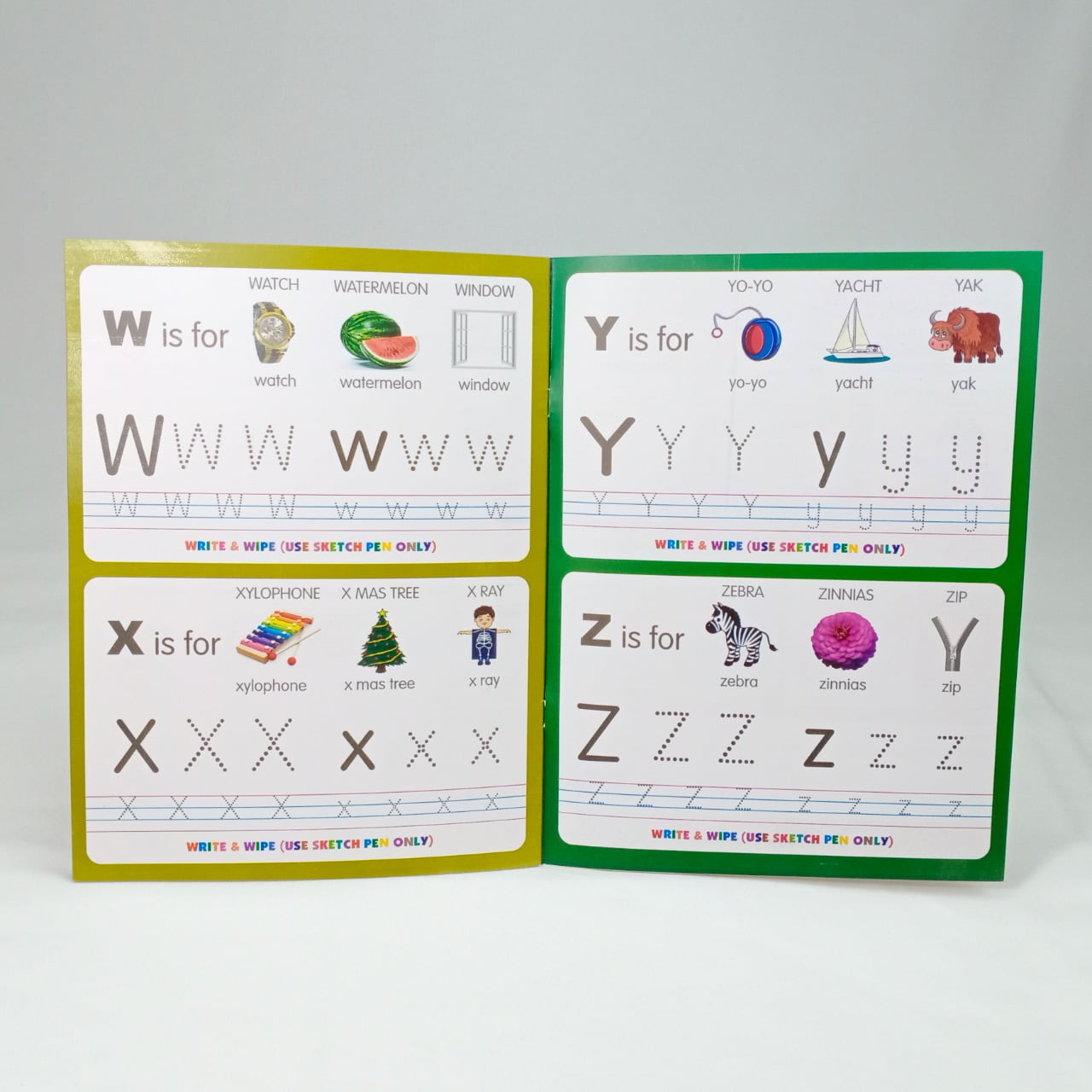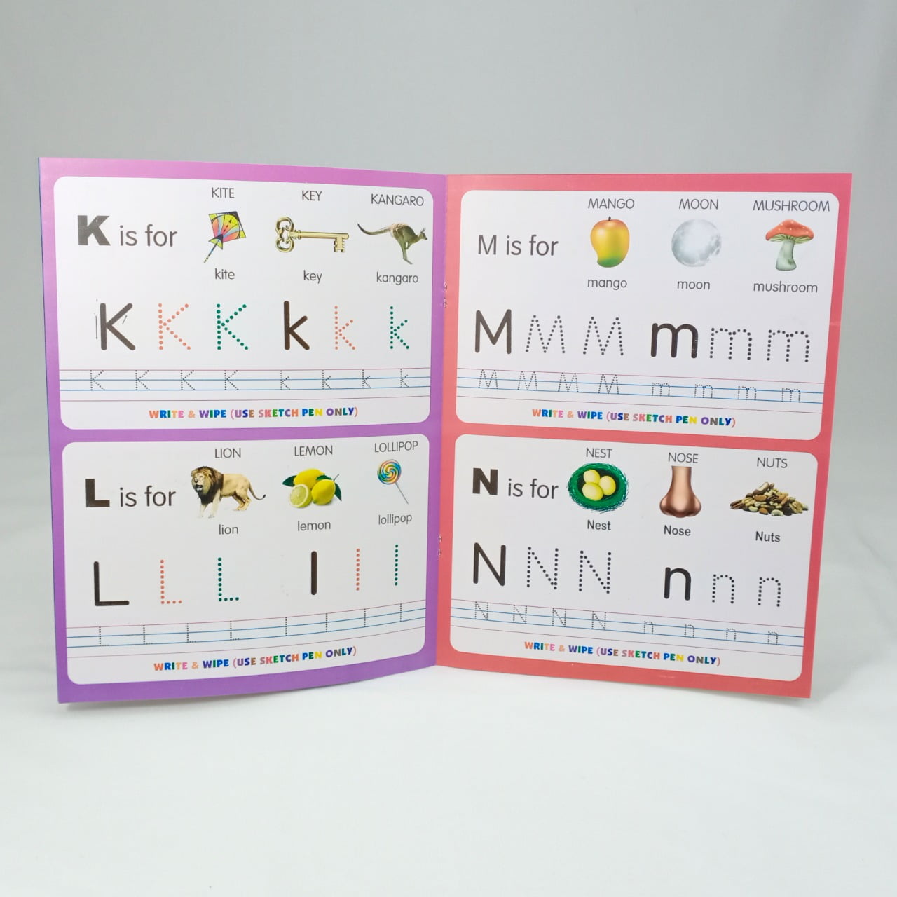 This is an amazing reusable note book for kids as well as adults(Rough Book) , It can be write any no of times and erased The Following Items can be used to write on the reusable books – Do’s : The below items can be erased using Damp Wet Cloth or wet wipes except 9 and 11 1. Ink Pens 2. Washable Crayons 3. Sketch 4. High Lighters 5. Temporary Markers – any color – Which is used on white board 6. Paint Brush Pen 7. Gel Pens 8. Paint Colors – water colors 9. Color Pencils – Erase with Eraser 11. Pencils – Erase with Eraser Don’t : 1. Donot use permanent marker and Ball Pens to written on books , incase if done by mistake it can be cleaned using body spray – just spray and wipe it off …. Contents : 1 book – no pens Added