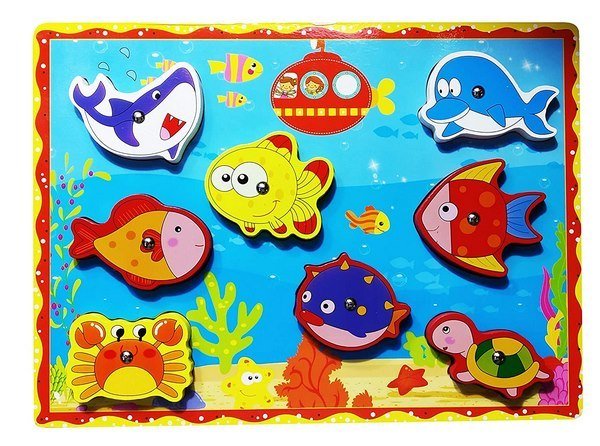 Extrokids Wooden Sea Animal Magnetic Fishing Game Toy for Learning Education with Magnet Poles Toy - D2 - EK1653