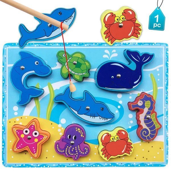 Extrokids Wooden Sea Animal Magnetic Fishing Game Toy for Learning - EK1652