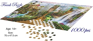 Challenge Your Mind: What can be a better solution to keep your mind sharp than a challenging and fun jigsaw puzzle for adults? Our 1000 piece puzzles can help improve imagination, mental agility, problem-solving skills and stimulate memory and focus.The puzzles not only keeps everyone engrossed but also helps in developing self-confidences well as patience. Completing this puzzle enhances visual perception, eye and hand coordination, improves memory, heightens creativityQuality: The Frank jigsaw puzzles 1000 pieces stand out with a durable cardboard material, printed with high-quality inks that will remain vivid and intense for years. The puzzle pieces are cut with precision and do not contain any toxic materials or harsh chemicals.Brain Teaser at All Ages: This gorgeous puzzle game is suitable for all ages and levels of experience if you are brave enough to challenge yourself with a 1000 piece puzzle! Our jigsaw puzzle can be used by kids above 14 years old, adults, and seniors, making everyone put the phones aside and chase away boredom in a fun way.Ideal Present: It’s easy to make someone’s day special with the Frank puzzles for adults! The puzzle makes an amazing present for your family, friends, or colleagues, on any given occasion such as Christmas, anniversary, holiday, birthday, and more.