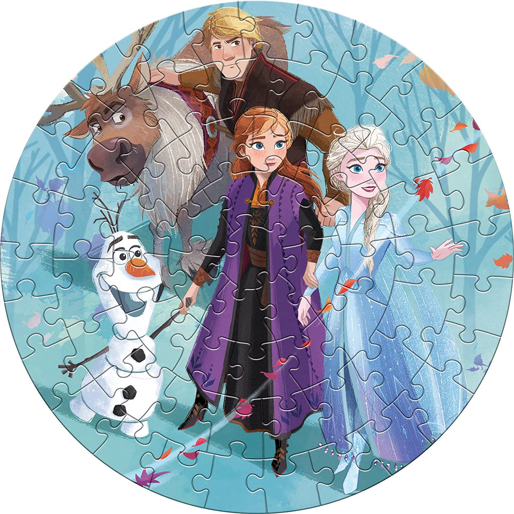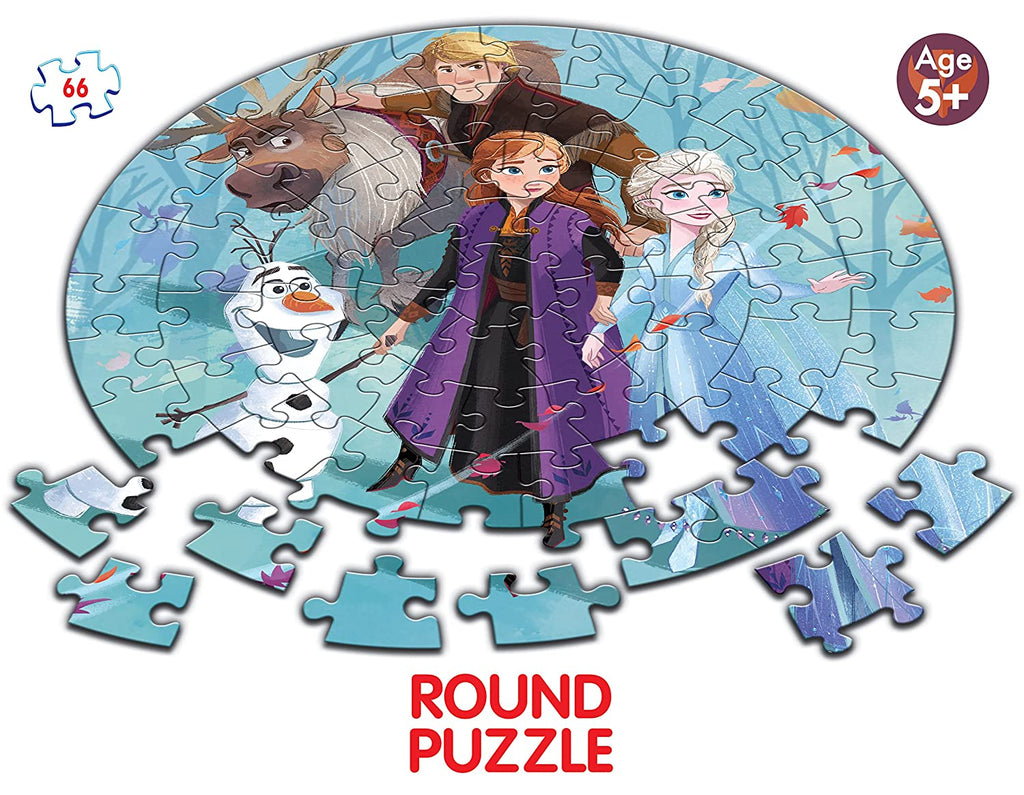 Children will have lots of fun assembling the colourful round jigsaw puzzle featuring characters from the popular Disney animated movie Frozen II. Comprising of 66 pieces, the puzzle is appropriate for children of ages 5 years and older, and will measure 42 cm x 42 cm when completed. Assembling the puzzle will help in increasing the child’s concentration and focus, and developing their logical thinking, visual skills, motor skills and hand-eye coordination