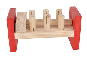 - Hammer down the 5 pegs - turn the bench over and they are ready to be pounded again.