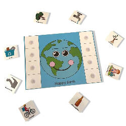 Its important to educate our toddlers about the effects of our day to day activities on our planet. This product is a fun way to introduce kids to the concept of environment conservation.Kids need to sort the elemets on 2 mats happy and sad earth. Activities which makes our earth happy will go on happy earth and whih makes our earth sad will be placed on sad earth mat.On the back side we have a habit traker to inculcate environmental friendly habits amongst kids. We also have a fun i-spy activity at the back of one mat.