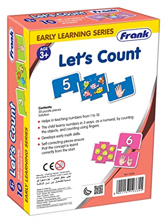 This Frank Let’s Count Puzzle is designed to help little ones stay put and have fun while learning. Keeping minds engaged in a productive way, the educational puzzle features fun matching concepts to keep children occupied for a long-time span. It is made to boost problem-solving skills through personal learning experiences at home as well as preschools, classrooms and daycares. The 3-piece jigsaw puzzles can help boost early learning skills such as sorting, concentration, teamwork, and visual abilities. The fun learning activity jigsaw set is tested by real educators and is recommended to help enhance motor skills and hand-eye coordination of early learners.