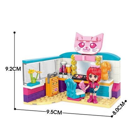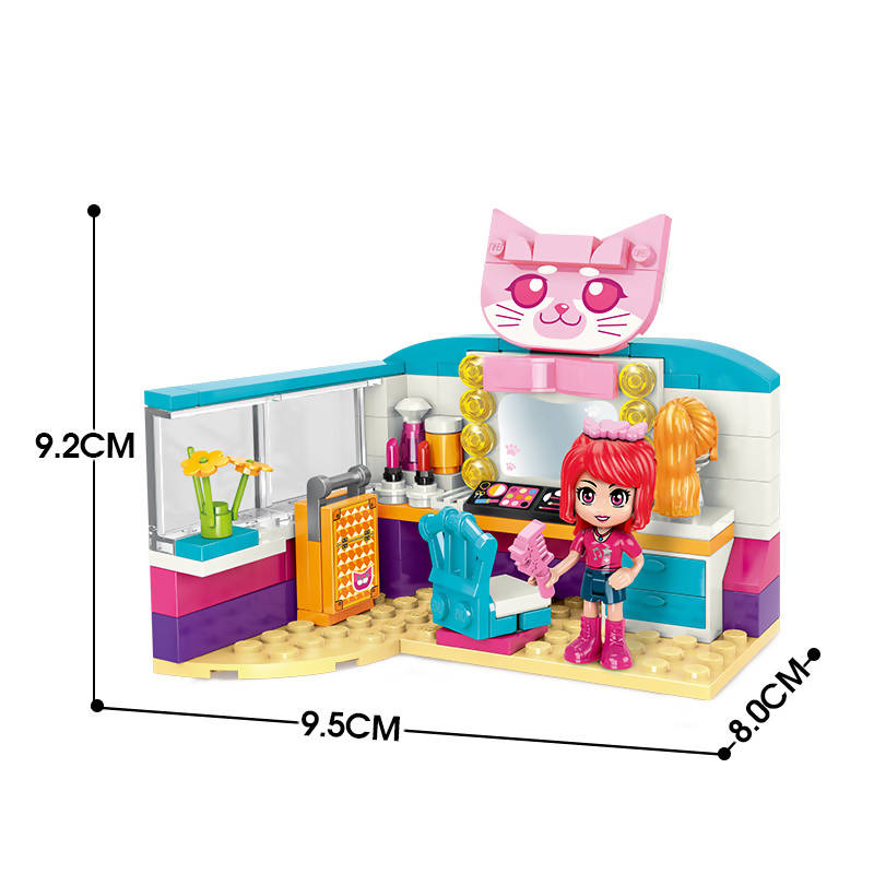 Do a gorgeous makeover with a full set of cosmetic tools. Girls will look new and become more confident. Very creative appearance design, and there are hair dryer parts, cosmetic items, chair , cartoon pretty girl Cherry, these are the elements that girls love very much. The girls are not only happy play, but also full of beautiful imagination. High-quality Bricks-Every brick is screened and tested by professional machines, which greatly reduces the error rate of bricks and greatly improves the play experience. The bricks are closely connected to the bricks without feeling loose, have high quality. Vivid and Detailed Colorful Manual Book--The manual book has detailed color step diagrams. It has passed the test of many professional players. It is very detailed and easy to follow. Even a beginner will not make you feel difficult. Exquisite Packaging-The bricks are classified into a number of parts packages in detail, which will not make you feel messy. The well-designed packaging box will make you shine, suitable as a gift for your friends.