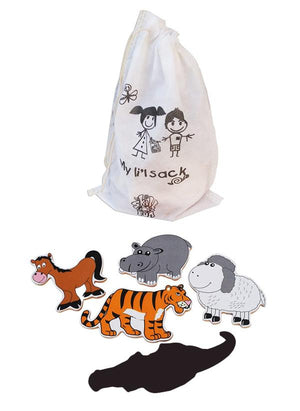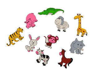 Carefully crafted set of 10 wooden animals brightly colored with non-toxic paints. Magnet behind each vegetable to stick on any magnetic surface - a refrigerator, the oven, almirah, washing machine etc Learn the vegetables and play with them for hours, just sticking them on any magnetic surface! Comes with a drawstring pouch for storage