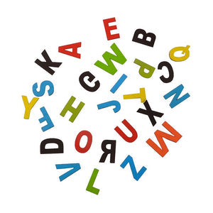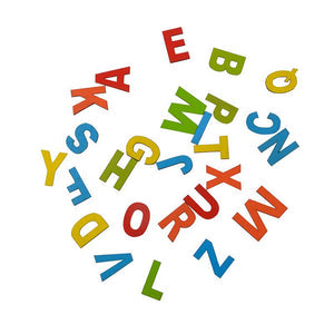 A set of magnetic alphabets so you can let your child be in the kitchen with you and not be worried! You can even be shopping online now, and your little one can be constructively busy sticking these on to the almirah!. Carefully crafted wooden alphabets. Brightly colored with non-toxic paints. Magnet behind each alphabet to stick on any magnetic surface - a refrigerator, the oven, almirah, washing machine etc. Learn the alphabets, spell words, recognise colors..the child can be constructively busy, playing by himself/herself for hours! Comes with a drawstring pouch for storage
