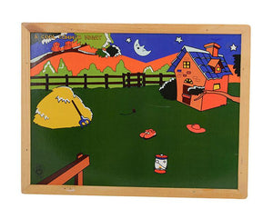 - One side has a whole scene of a barn on a summer night.