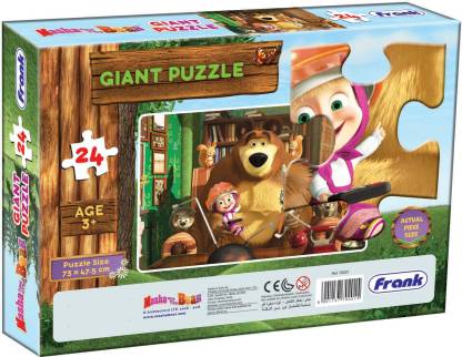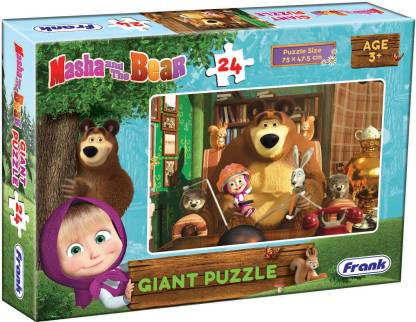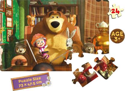 An interesting animated television cartoon show ?Masha and the Bear? now available in the form of a Jigsaw Puzzle. Indulge young minds of age 3 years and above in this fascinating world of fun, enjoyment and at the same time development and growth too. This giant puzzle having 24 pieces is a must for kids of age 3 years and above in improving visual skills, mnemonic skills, improving concentration power, ability to solve problems and much more. The dimension of this jigsaw puzzle is 73 x 47.5 cm which is a large giant puzzle having unique characters from the above-mentioned animated television cartoon series. They are the main characters Masha and the Bear, a rabbit, 2 squirrels, and 2 hedgehogs. The storyline is as follows. A retired circus bear decides to live a quiet life in the forest. However, when Masha, a sprightly young girl, enters the forest, his peaceful life is interrupted. The show focuses on the adventures of this little girl and this fatherly bear that always keeps her from disasters.Grab this giant jigsaw puzzle for your little one as he/she will have exposure to the various animals. Identify and get to learn their names. How each animal looks and how they are different from one another. So it's not just fun and entertainment but also a learning tool for your child. Knowing what piece goes where in the puzzle will also help them to boost their memory, increase concentration. The child will also learn to master the art of being patient and improve hand-eye coordination