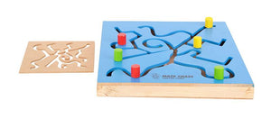 A pre-cursor to teaching skills, this is very important for a young child. The movement of the wrist and hand muscles when the child moves the wooden cube cross the path is the same as is required and used by the child when he/she starts to write. This is a great way for a child to exercise and condition his/her wrist movement, fingers, and hand movement. And he's just playing!
