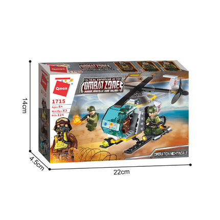 Qman brings to you this amazing operation Nightingale Combat zones Building Blocks Set – 124 Pieces. Made from safe and durable material, this set will keep children entertained. Get ready for operation nightingale and let’s attack the enemy. The Army is equipped with the machine gun and military aircraft is ready to fly. This vehicle product makes a great addition to his collection of sets The New combat zone helicopter is neatly finished with grey, yellow, black colors for an appealing look