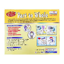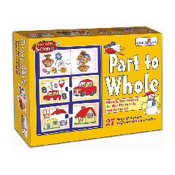Part to Whole game has been designed considering the inquisitive nature of children to find out about what things are made from. There are 27 sets of two piece match-ups depicting different objects on one card and its parts on another card. The child is required to carefully observe the whole (object) cards one-by-one and then look for the cards with the picture of parts it is made up of and then match them both. This way the child enhances his/her matching skills while getting their curiosity addressed in a playful manner.
