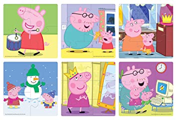 Engage your kids with some fun learning and educational activity this monsoon. As your child won’t be able to play any outdoor games and will have to stay indoors watching the Television, here we have an exciting set of 6 jigsaw puzzle games or you can term it as an educational tool for kids of age group 3 years and above which will promote their overall development. Take a look at these 6 colorful and attractive Peppa Pig Jigsaw Puzzles depicting the different characters from this cartoon series and enjoy looking at your child have fun and learn at the same time. Since the Peppa Pig cartoon series is very famous on channels such as Cartoon Network. Now its time to give your kids a feel of it by giving them a hands-on activity to perform. Each jigsaw puzzle in this set comprises a varying number of pieces which is an added advantage for the young one. The first puzzle comprises of the main character “Peppa Pig” playing the drum which is a 4 piece puzzle, the second puzzle depicts “Daddy Pig” giving a toy bear to “Peppa Pig” which is a 6 piece puzzle, the third puzzle comprises “Mummy Pig” and “Peppa Pig” staring at a crown which is 8 piece, fourth puzzle depicts “Peppa Pig” and her younger brother “George Pig” enjoying the snow and playing with a snowman, the fifth puzzle comprises “Granny Pig” wearing a crown which is 6 piece and the 6th puzzle depicts “Daddy Pig”, “Granny Pig” and “Pete Pig” amazed looking at the Computer. This Jigsaw puzzle having a dimension of 15.5 x 15.5 cm is built with high-quality cardboard that won’t tear off or peel of easily. Good quality paint is used hence you won’t face any issues of the color fading. Your children will be exposed to vivid colors, various shapes as well as various objects which we use and is much needed in our daily life. Peppa is a preschool anthropomorphic female pig, who participates in many activities. Every day, she learns and has a lot of fun with her family and friends. The show revolves around Peppa, and her family and friends.This masterpiece will help in concentration, memory building, developing the art of being patient, thinking ability, hand and eye coordination