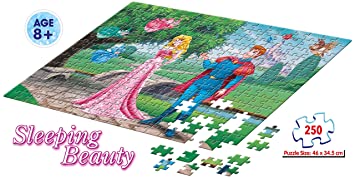 Facing trouble making your child study? Here is an alternative in teaching your child through an interactive learning session. Head on to this creatively designed, interesting 250 pieces large Jigsaw Puzzle containing the worldwide famous characters from the movie ?Sleeping Beauty? presented by Disney. Its a 1959 American animated musical fantasy film produced by Walt Disney based on The Sleeping Beauty by Charles Perrault. An educational tool that will keep your child busy as he/she will be enjoying as well as learning from this puzzle for overall development. Recommended for children above 8 years of age. A total of 5 characters present in one puzzle, the vivid colors, the different characters and the beautiful background on each piece of the puzzle will pique your child?s attraction. A witch curses a princess that she will die on her 16th birthday, but a fairy alters the curse so that the princess will go into a deep sleep and can only be awakened by a prince's magical kiss. This jigsaw puzzle especially designed for your young one is as interesting as this storyline mentioned. This masterpiece comes in a dimension of 46 x 34.5 cm. The 5 animated movie characters present on this high-quality cardboard are the main character ?Princess Aurora? referred to as the ?Sleeping Beauty? followed by her prince ?Prince Phillip? who fought against the wicked, maleficient, and ultimately killed the evil fairy before awakening Princess Aurora from the sleeping curse via the famous true love?s first kiss. ?Flora?, ?Fauna?, and ?Merryweather? are the protagonists of this film. They are characterized as Princess Aurora's fairy godmothers, who appear at baby Aurora's christening to present their gifts to her, as well as her guardians and/or parents.?Flora? is the tallest and oldest fairy, dressed in a pink gown, a pink hat, and a pink cape clipped with a yellow square. She is the strongest-willed leader of the group. Her gift to Aurora is the gift of beauty. She created and possesses the powerful Sword of Truth and the invulnerable Shield of Virtue. ?Fauna? is the middle fairy, dressed in a green gown, a green hat, and a green cape clipped with a green triangle. She is the fairy who is too good-natured towards Maleficent who is an evil fairy. Her gift to Aurora is the gift of song. ?Merryweather? is the shortest and youngest fairy, dressed in a blue gown, a blue hat, and a blue cape clipped with a blue circle. She is the fairy who is aggressive towards Maleficent and is bolder than the other two. As Merryweather is about to give her gift, Maleficent makes her appearance and curses Aurora to die when she touches a spinning wheel's spindle before the sun sets on her sixteenth birthday. Merryweather's gift is to weaken the curse so that instead of death, Aurora will fall into a deep sleep until she is awakened by true love's kiss.Assembling the pieces together in the correct manner to get back the whole picture is the task involved in this activity. The level of concentration needed will be at the same level as this age group. So you need not worry.