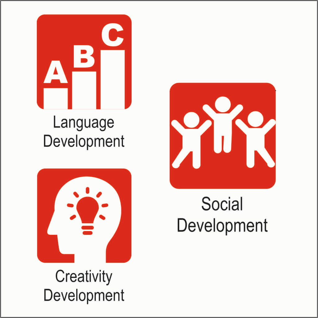 Multiple skill enhancement: Enables Language development, Social skill development, Creative development and Intellectual Skill Development