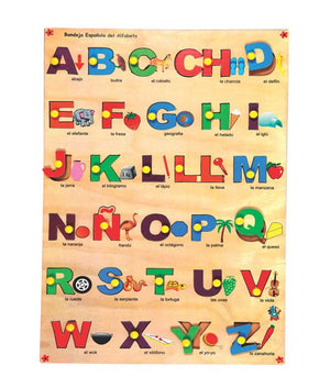 Learn Spanish the fun way! The alphabets come out with the help of the knobs. The corresponding image is given alongside the alphabet. Identify the alphabet and the object that goes with it and place the alphabet in its correct place. This puzzle is self-corrective.
