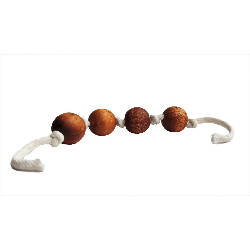 It is made out of 4 wooden beads and secured with a cotton rope, knotted at the ends and between each bead, to give stability.