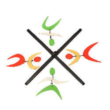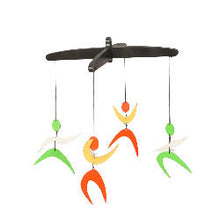 This mobile is composed of four stylized dancers, consisting of three elements: head, arms and legs.