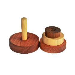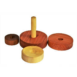 The child initially is able to practice his skills by placing the discs on the dowel and gradually learns the concept of putting the discs in the correct order.