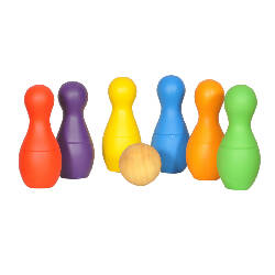 Strike! This beautiful bowling set features six vibrant coloured pins and a ball. It is a perfect toy for children of all ages. Try to knock them all down at once OR make it a learning experience and aim for a particular colour!