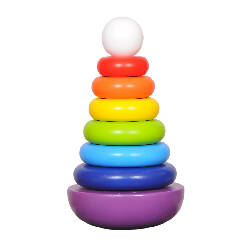 Unlike traditional stackers, this rainbow stacker has a round, wobble base for an added balancing fun. Once the rings are stacked, place the ball on top and watch it wobble gently – an absolute delight to the inquisitive young minds!